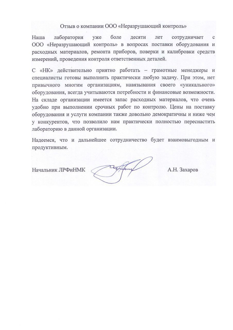 Компания помогает комплектовать лаборатории нашей организации, работающие в различных направлениях, в соответствии с требованиями стандартов и методик испытаний. При необходимости помогает сформировать техническое задание на закупаемое оборудование и помогает уложиться в бюджет. Специалисты ООО «НЕРАЗРУШАЮЩИЙ КОНТРОЛЬ» проводят полноценные теоретические и практические занятия со специалистами предприятия для обучения навыкам работы на специализированном оборудовании.