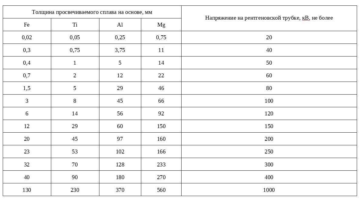 Основные рекомендации по выбору напряжения рентгеновского аппарата, источника гамма-излучения прописаны в ГОСТ 20426-82 при применении промышленной пленки. В данном ГОСТе показаны области применения радиографического метода дефектоскопии для рентгеновских аппаратов (Табл. 3) и гамма-дефектоскопов (Табл. 4). Для цифровых детекторов используется ГОСТ ISO 17636-2 (Табл. 5).