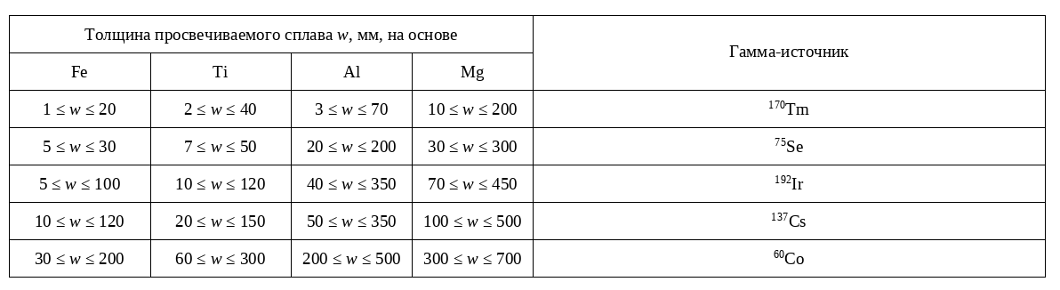 Для тонкостенных изделий из сплавов на основе Fe толщиной до 1 мм, для сплавов на основе Ti (при толщинах до 2 мм), Al (до 3 мм), Mg (до 10 мм) идеально подходят рентгеновские аппараты. С использованием гамма-дефектоскопов возможно просветить бО´льшие толщины, но затруднительно проконтролировать тонкостенные изделия, ввиду того что гамма-лучи проходят сквозь такие толщины без достаточного ослабления интенсивности потока и на детекторе слабо заметны перепады сигналов от небольших несплошностей, что снижает выявляемость дефектов.