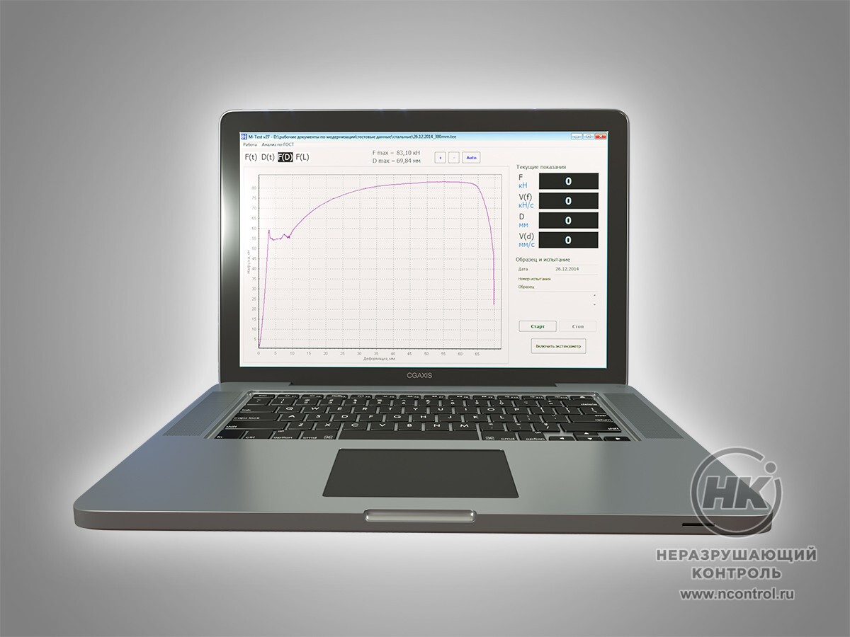 Программа работает с двумя диапазонами. Каждому диапазону привязан отдельный датчик усилия. При смене диапазона в программе автоматически меняться сигнал с соответствующего датчика усилия.