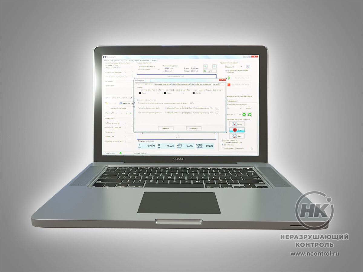- Возможность управления испытательной машиной с клавиатуры ПК;