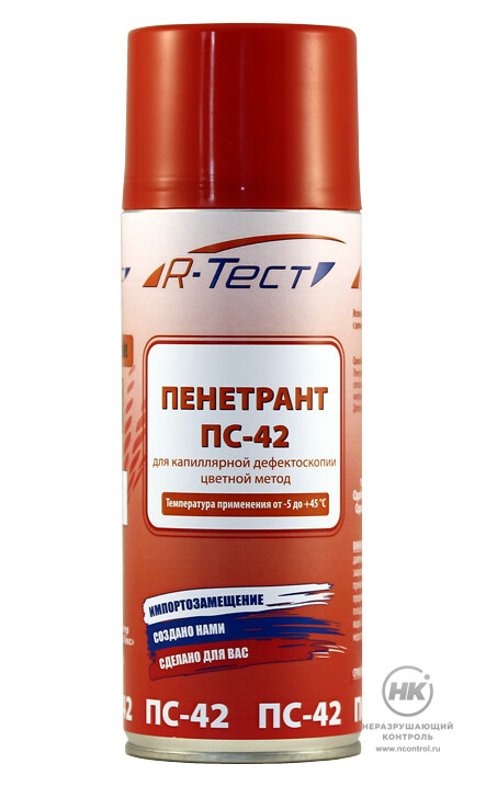 Пенетрант универсальный R-Тест ПС-42 для капиллярного контроля предназначен для заполнения дефектов для дальнейшего их выявления по индикаторным следам.