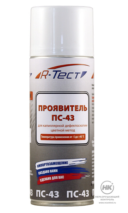 Проявитель универсальный R-Тест ПС-43 для капиллярного контроля применяется сконтрастным пенетрантом для выявления поверхностных дефектов.