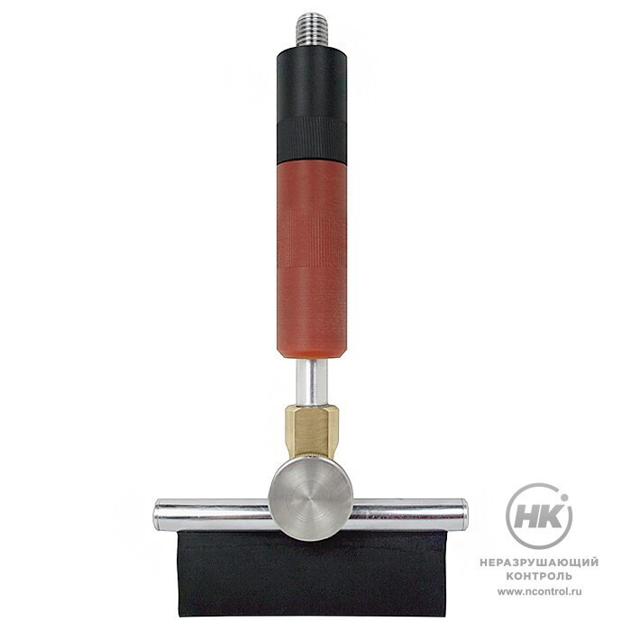 Плоский резиновый электрод стыкуется с высоковольтным трансформатором-держателем напрямую или через удлинитель, и оператор вручную щёточной частью контролирует поверхность покрытия. Несколько типоразмеров и форм электродов обеспечивают высокую производительность при контроле квазиплоских, цилиндрических и сложнопрофильных изделий, либо изделий с малой кривизной.