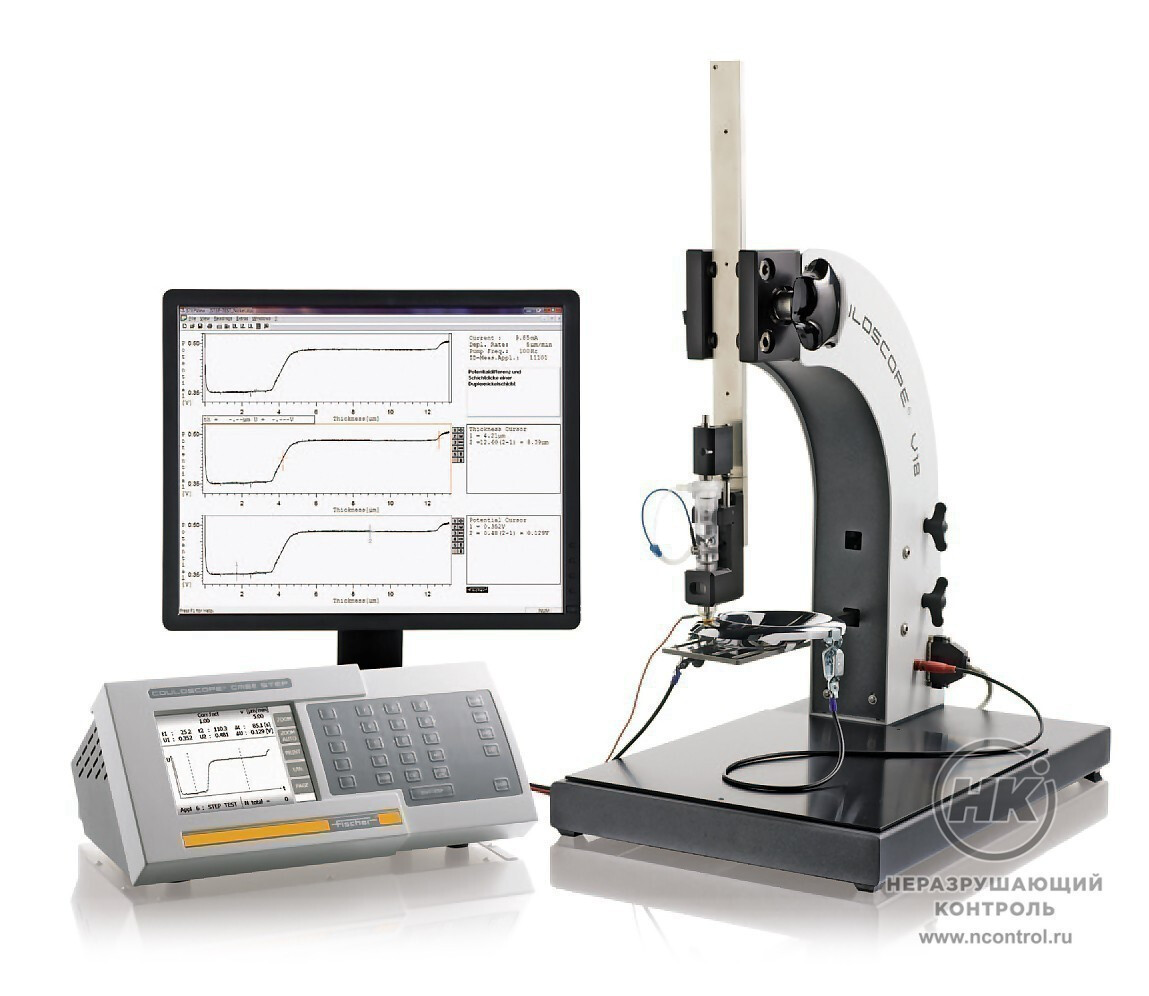 Толщиномеры покрытий Fischer серии COULOSCOPE используют в работе метод кулонометрических испытаний по стандарту DIN EN ISO 2177. Процесс представляет собой растворение металлического покрытия с подложки с помощью электролита под контролируемым электрическим током. Происходит обратный процесс гальванопокрытия. Ток, необходимый для снятия покрытия, прямо пропорционален массе металла, подлежащего удалению.