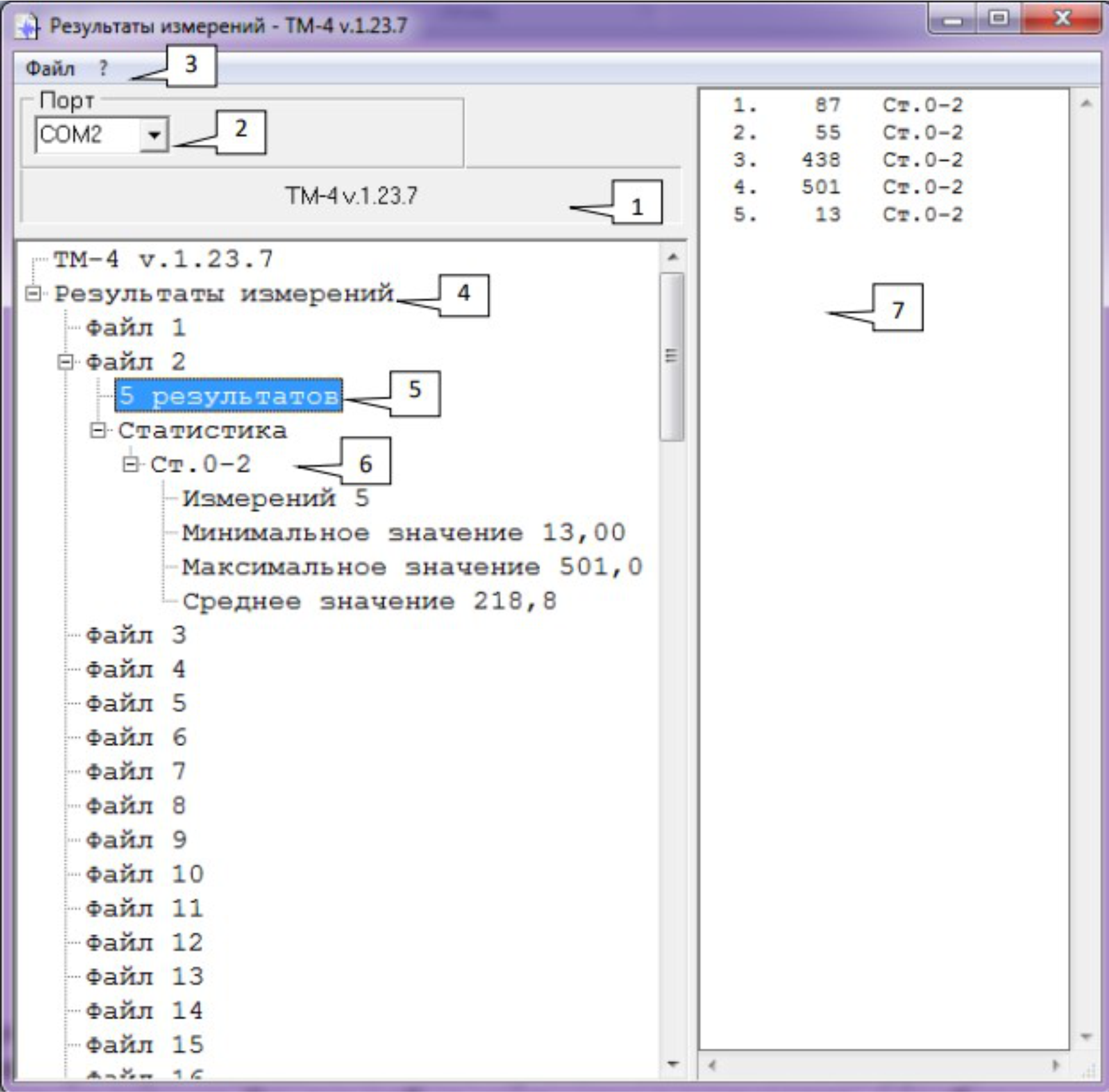 Программа для считывания из прибора результатов измерения, их статистической обработки и вывода на печать.