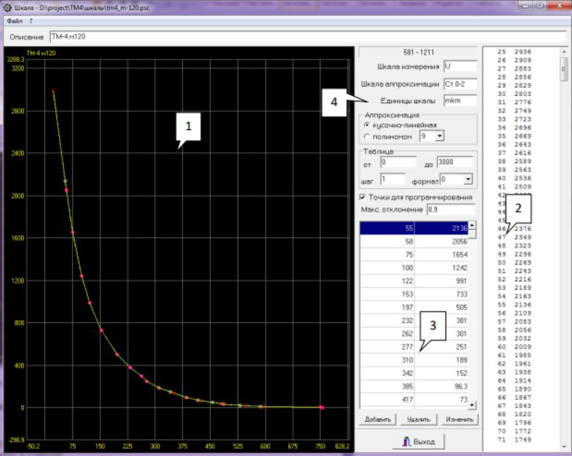Программа для создания и записи аппроксимационных шкал в прибор и чтения шкал из прибора.