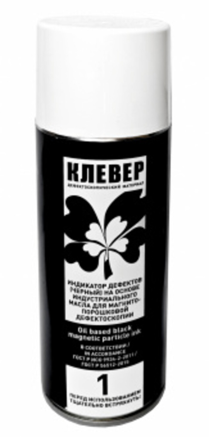 Чёрная магнитная суспензия «Клевер 1» предназначена для обнаружения поверхностных и подповерхностных дефектов в изделиях, деталях и полуфабрикатах из ферромагнитных материалов при проведении неразрушающего контроля методом магнитных частиц по ГОСТ 21105.