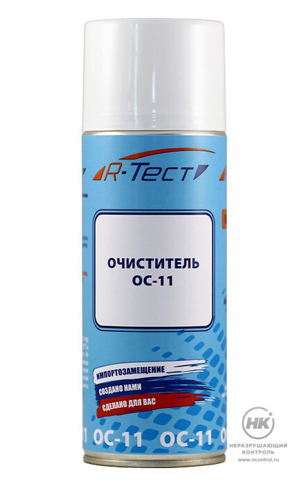 Очиститель R-Тест ОС-11 на основе растворителей используется для очистки поверхности перед проведением магнитопорошкового контроля, а также для быстрого удаления белой фоновой краски.