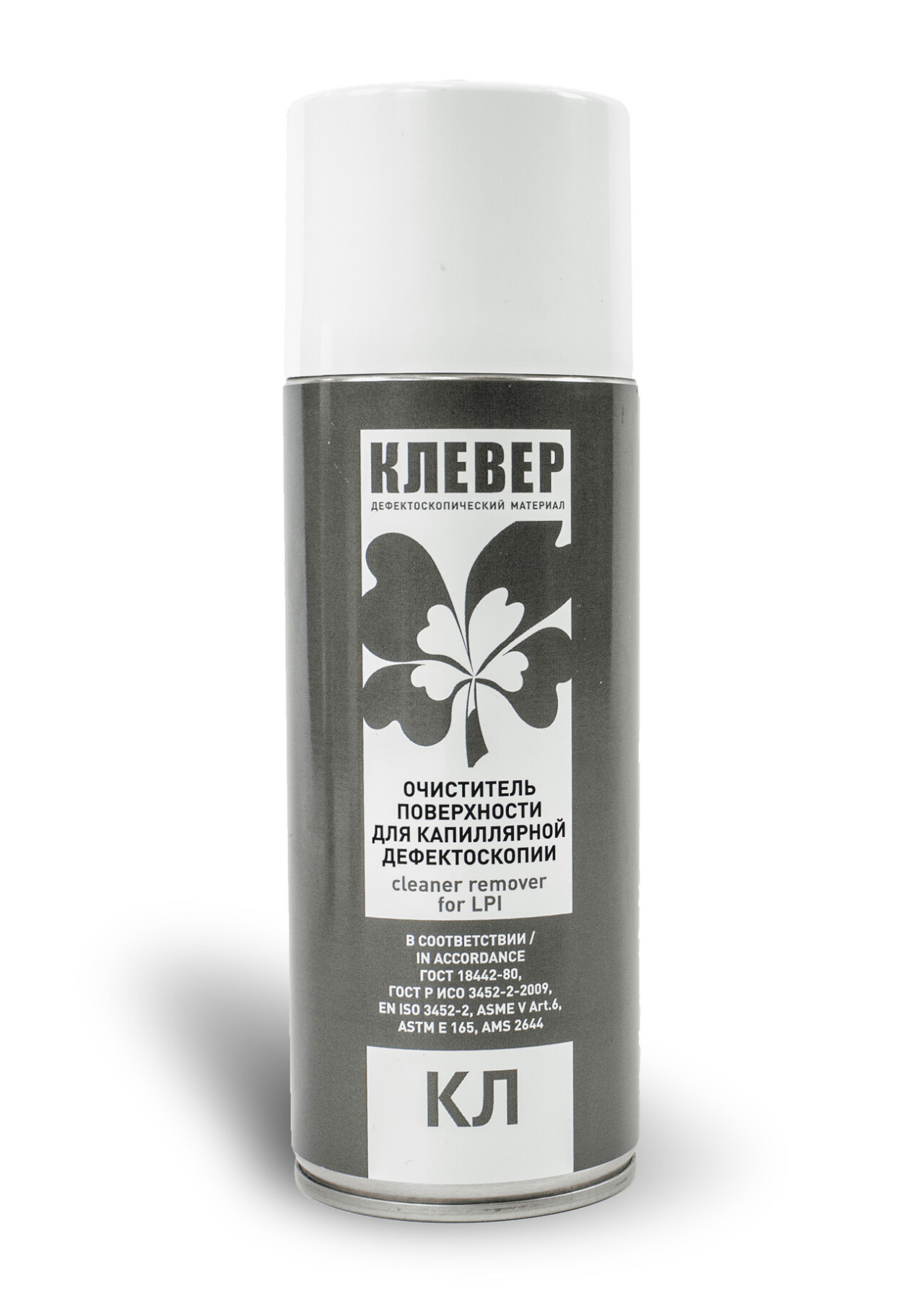 Очиститель КЛЕВЕР-КЛ применяется для очистки поверхности перед проведением контроля и удаления пенетранта с поверхности объекта, оставшегося на ОК при проведении капиллярного контроля.