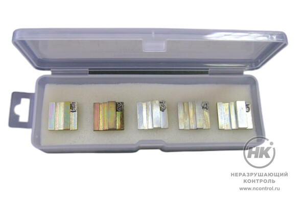 Комплект выпуклых и вогнутых образцов-имитаторов предназначен для контроля качества корневых сварных соединений на труднодоступных участках. Подходит для работы с денситометром.