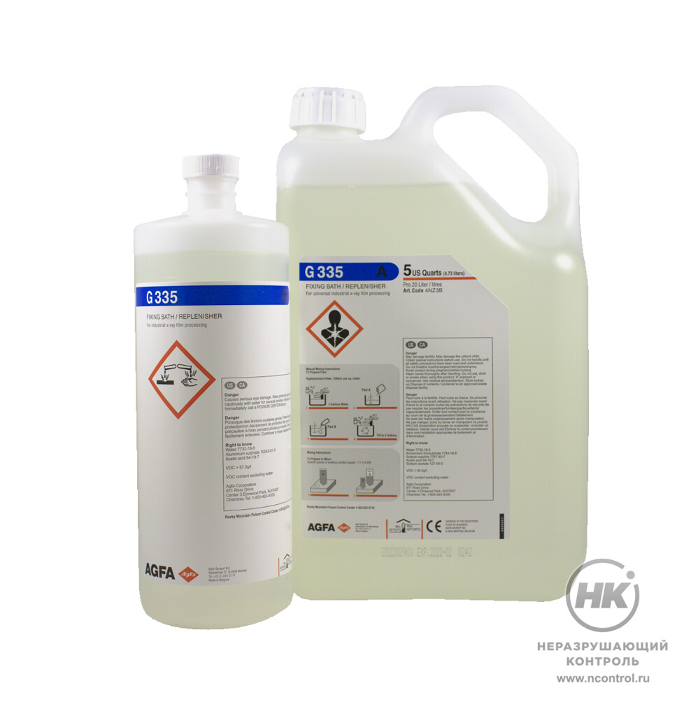 Двухкомпонентный фиксаж Agfa Structurix G335 предназначен для автоматической обработки рентгеновских плёнок. Поставляется в коробке, содержащей два одинаковых полукомплекта, каждый из которых состоит из двух компонентов. Один полукомплект может быть разведён до 20 литров рабочего раствора.