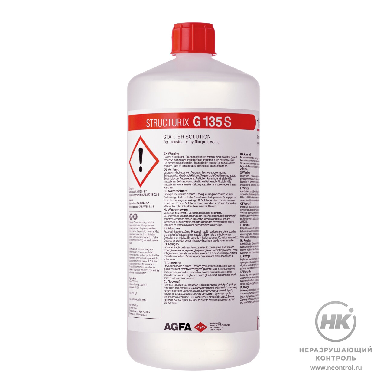 Стартер Agfa G135S оптимизирует свойства рентгеновской плёнки для её успешной транспортировки внутри автоматической проявочной машины. Реактив предназначен для компенсации среды проявителя AGFA Structurix G135.