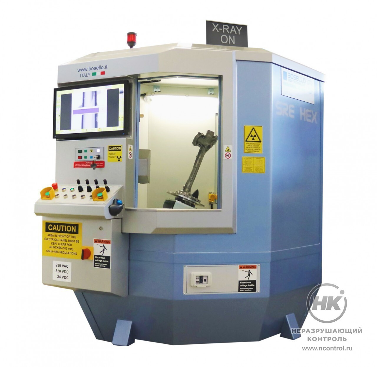 Рентгенотелевизионная установка BOSELLO SRE HEX предназначена для проведения промышленной радиоскопии материала на наличие дефектов. Оснащается рентгеновскими аппаратами с напряжением от 130 до 225 кВ. Исследует объекты с максимальными размерами 500×700 мм и массой до 35 кг.