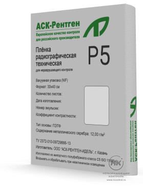 Рентгеновская плёнка Р5 предназначена для областей применения с ориентацией на высокое качество снимка и рациональное время экспозиции. Характеризуется средней чувствительностью, высоким контрастом и мелким зерном.