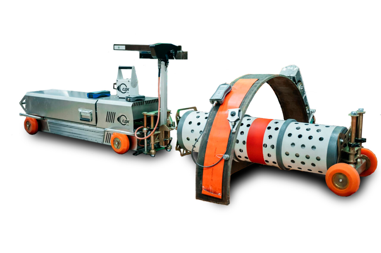 Контролю подлежат трубы от 530 до 1420 диаметра и толщины стенки до 32 мм. Кроулер оснащен беспроводным дистанционным управлением.