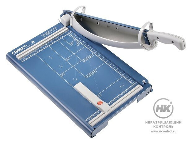Резак Dahle 561 имеет металлический стол, на рабочую поверхность нанесена разметка. Режущий нож и контрнож, выполненные из высококачественной стали, обеспечивают точную линию реза. Резак снабжён вращающимся защитным кожухом, позволяющим оператору контролировать линию реза и задний упор.