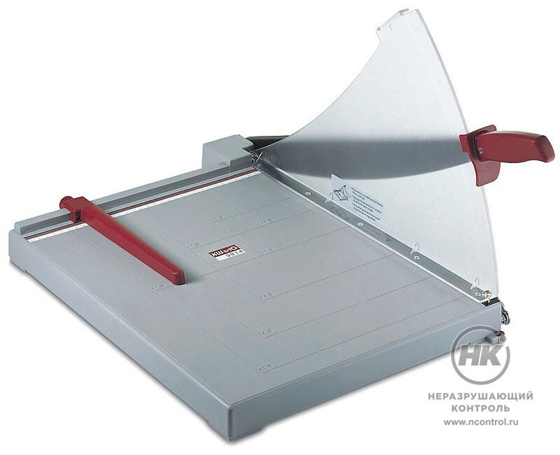 Резак сабельный KW-Trio 3914 для работы с различными сортами бумаги или плёнки. Длина реза — 440 мм. Есть разметка под форматы А6 – А3.