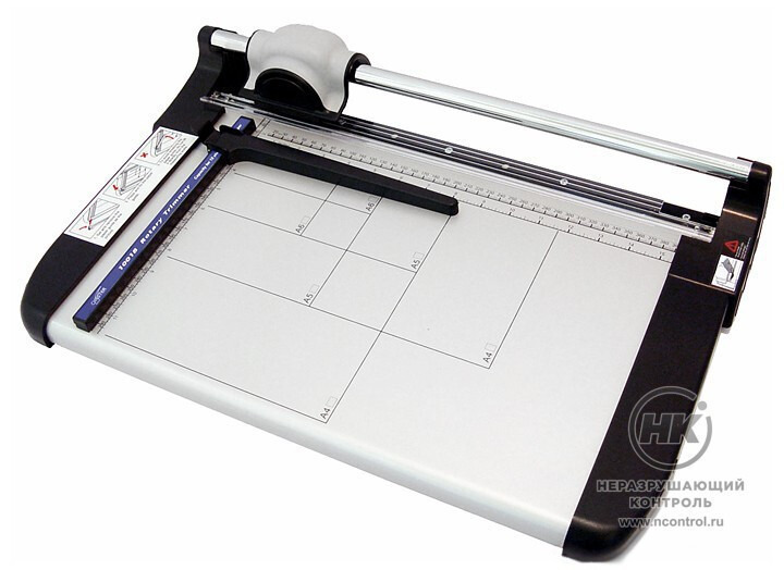 Модель имеет простую конструкцию: блок роликового ножа движется по торцу контрножа на штанге прямоугольного сечения. Рабочий стол выполнен из металла, имеет разметку стандартных форматов бумаги. Линейки по краям имеют деления в миллиметрах, сантиметрах, дюймах.