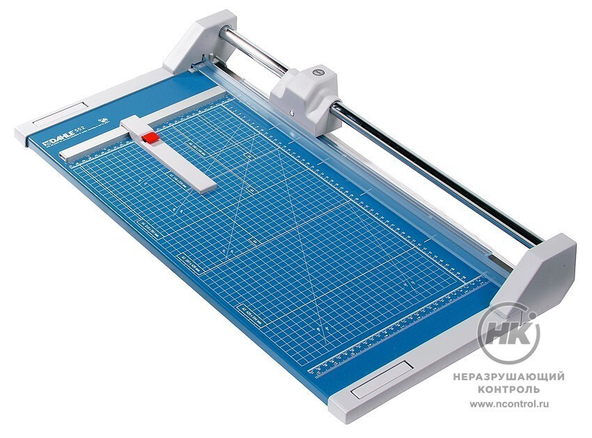 Роликовый резак Dahle 552 — улучшенная версия Dahle 550 с длиной реза 510 мм. Подходит для работы с форматом А3. При настенном креплении и использовании держателя резак подходит для рулонной пленки. Стальной стол размечен линейками под прямой и угловой рез.