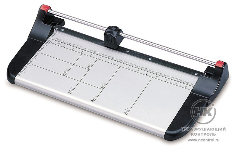 Роликовый резак KW-Trio 3116 предназначен для работы с различными сортами бумаги или плёнки. Рабочий стол выполнен из металла. Длина реза — 398 мм. Есть разметка под форматы А6 – А4.