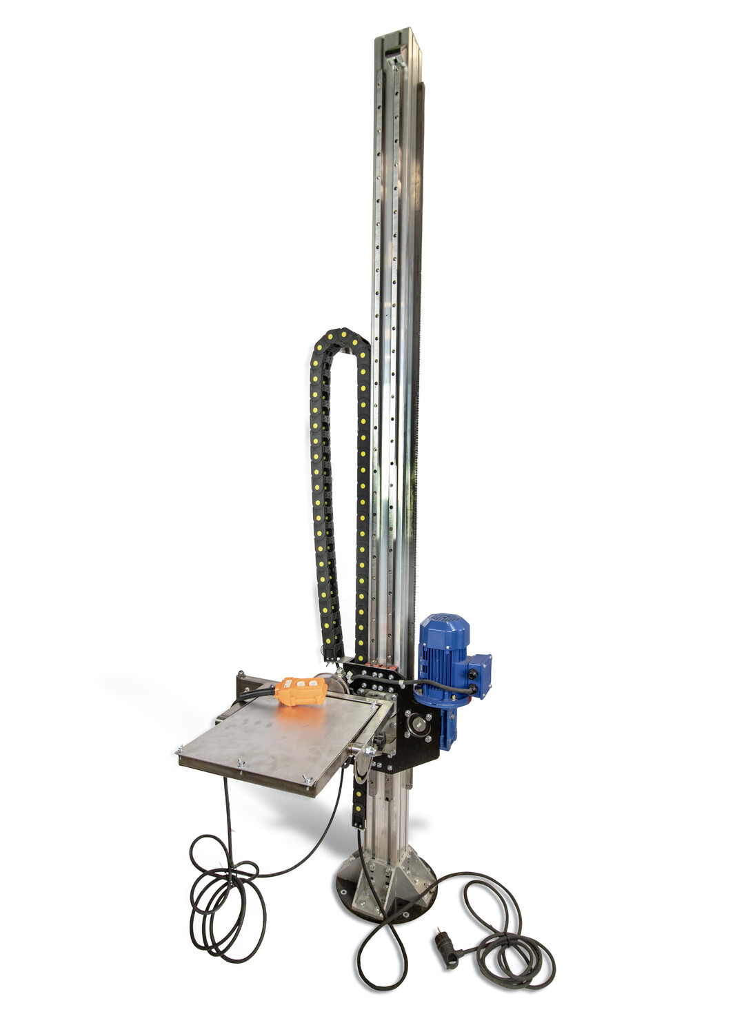 Для удобства перемещения штатив оборудован ручкой, а также двухкнопочным постом для управления движением каретки вверх-вниз. На каретке установлен штатив-манипулятор с тремя степенями свободы для перемещения детектора.