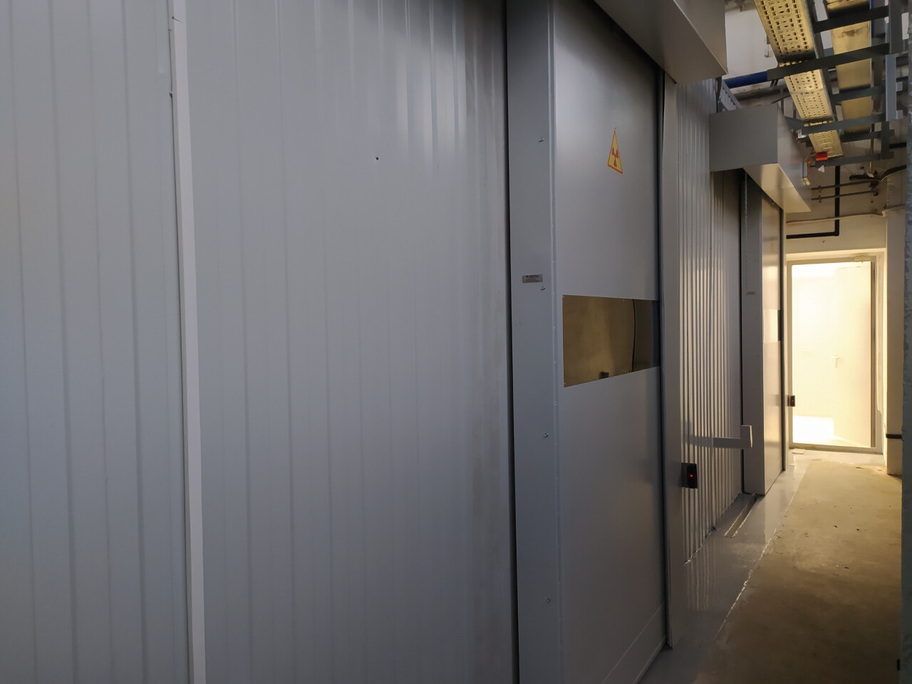 Двери имеют трехслойное исполнение из оцинкованного металла, заполненного свинцовыми пластинами с терморасширяющимся и резиновым уплотнителями от холодного дыма по периметру. Могут быть оборудованы блокировками, обеспечивающими прекращение генерации рентгеновского излучения при открывании любой двери в защитную камеру.