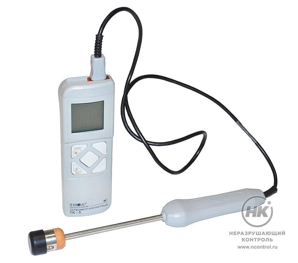 ТК-5.04 — цифровой термометр, измеряющий температуру жидкостей, газов, сыпучих сред и твёрдых поверхностей посредством прямого контакта зонда с объектом. Диапазонизмеряемых температур составляет от -100 до +1 600 °С в зависимости отподключенного зонда. К выбору предлагается 22 типа сменных датчиков.