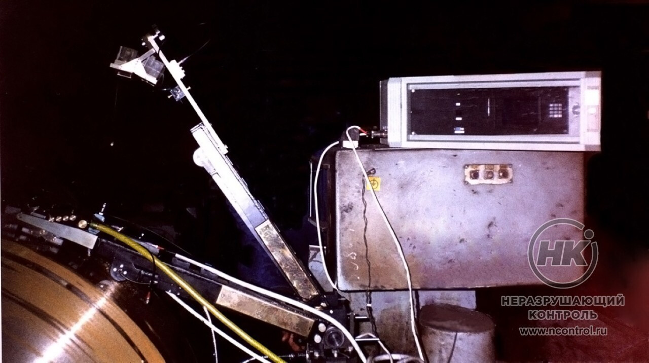 Конструктивно установка выполнена в виде пыле- и влагозащищенной приборной стойки, размещенной на свободном участке станины (площадки) токарно-шлифовального станка и съемным механизмом сканирования, установленным на суппорте, с АБ. В установке реализован эхо-метод ультразвукового контроля на частотах 1.25...2.5 МГц.