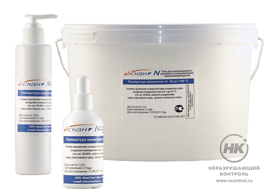 Низкотемпературный гель I-SCAN N для промышленной ультразвуковой дефектоскопии. Предназначен для обеспечения хорошего акустического контакта между ультразвуковым датчиком и контролируемой поверхностью при температурах от -35 до +100 °С.