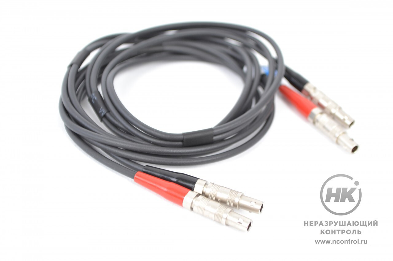 Соединительные кабели предназначены для подключения пьезоэлектрических преобразователей к ультразвуковым дефектоскопам и толщиномерам. Длина варьируется от 1 до 2 метров. Распространенные типы кабелей: LEMO, BNC, СР-50 и microdot.