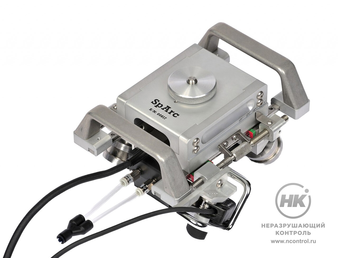 Сканер Sp-Arc оснащён четырьмя магнитными колёсами для хорошей фиксации на трубе. Положение колёс регулируется в соответствии с диаметром трубы. Есть возможность ручной регулировки матрицы с датчиками по высоте.