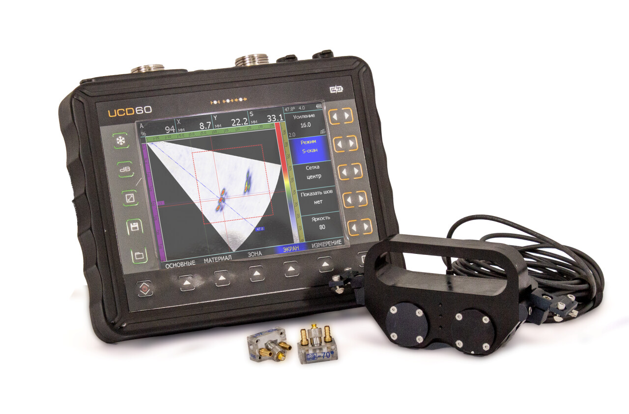 Одновременно также можно использовать до 2х каналов TOFD, что позволяет проводить контроль, соответствующий всем современным мировым стандартам. Так же в приборе реализована функция обычного классического дефектоскопа.