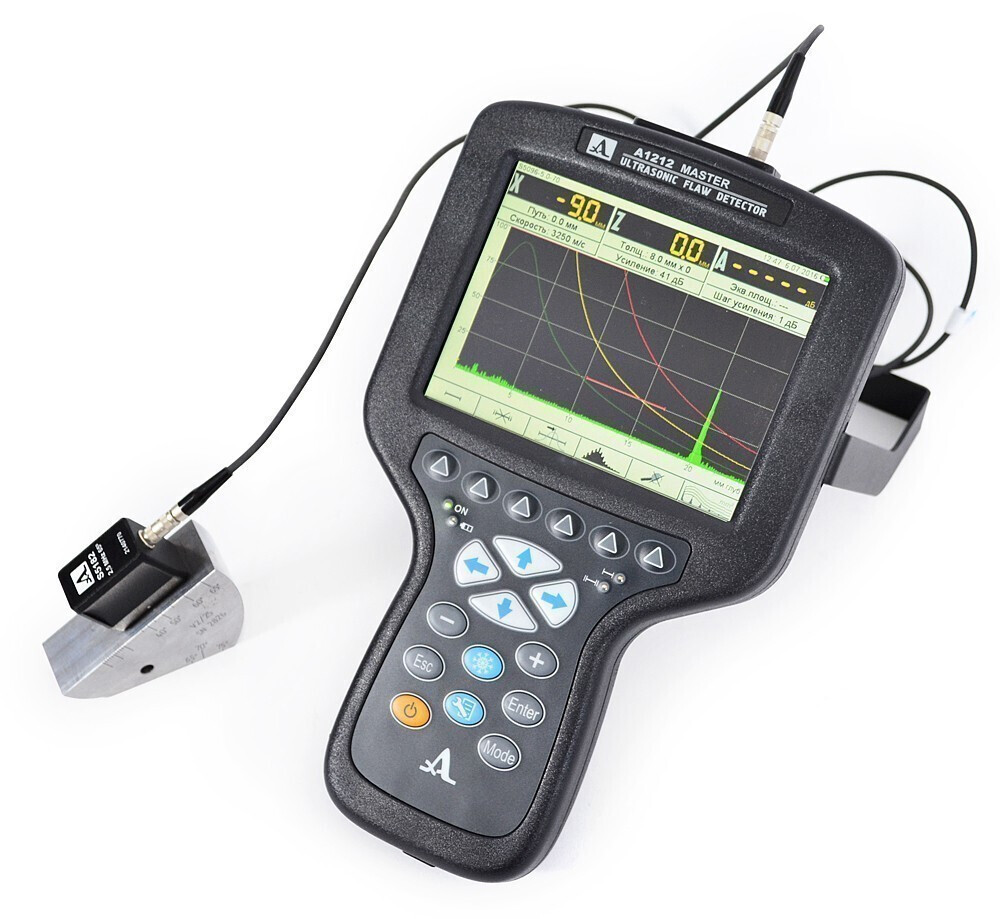 А1212 MASTER — портативный цифровой дефектоскоп, используется для выявления несплошностей в изделиях из металлов и пластмасс с помощью ультразвукового метода. Позволяет оценивать параметры дефектов, имеет функцию ВРЧ, построения DAC-кривых, а также встроенные АРД-диаграммы. Содержит в комплекте поставки два прямых и два наклонных преобразователя.