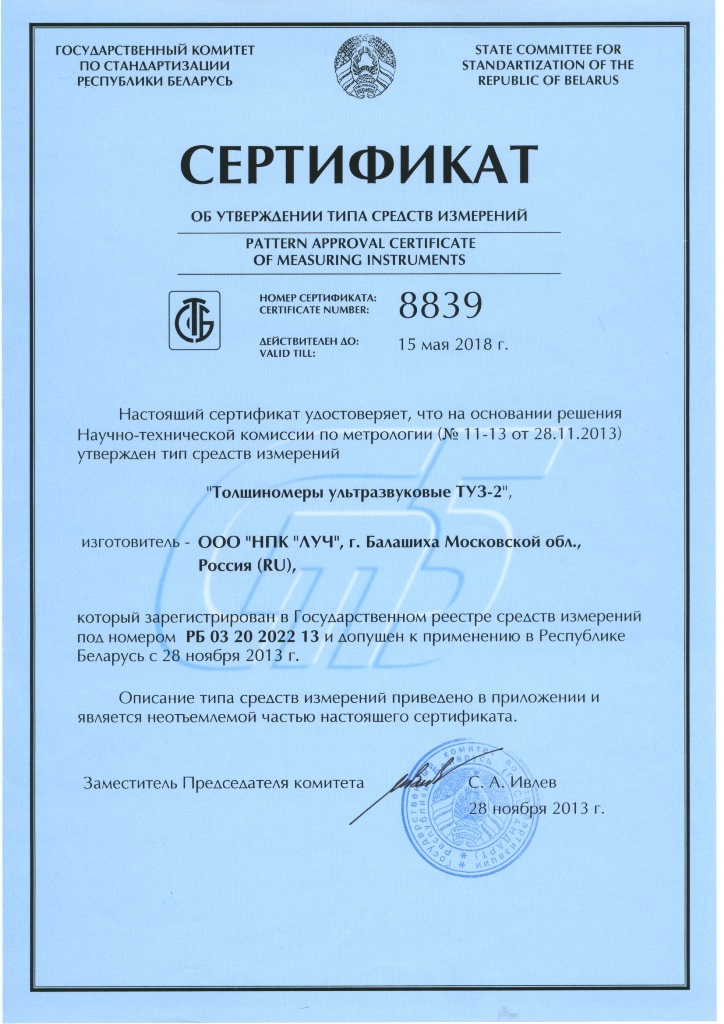 Ультразвуковой толщиномер ТУЗ-2 измеряет толщину изделий из металлов и неметаллов.