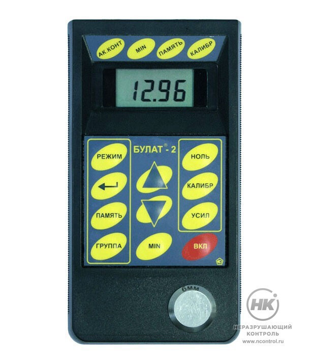 Ультразвуковой толщиномер «Булат-2» предназначен для измерения толщины изделий для определения их коррозионного состояния, в том числе и под защитными покрытиями. Диапазон измерений 0,4 – 600 мм в зависимости от типа преобразователей. Снят с производства. Замена — Толщиномер «Булат 1S».