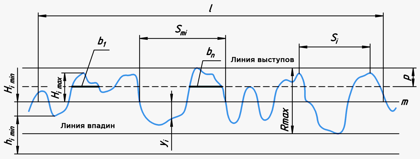 Himin — отклонение пяти наибольших минимумов профиля;