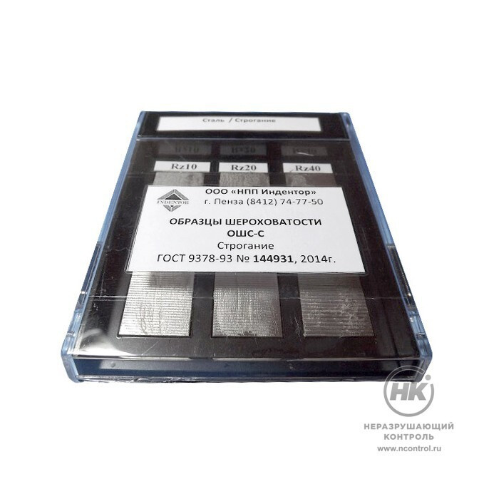 ОШС-С — металлические образцы с эталонными параметрами шероховатости для обработки строганием. Применяются на машиностроительных, приборостроительных, ремонтных предприятиях для контроля шероховатости поверхности на различных производственных этапах. Изготовлены согласно ГОСТ 9378-93.