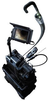 Видеоистема IPLEX SX может эксплуатироваться как внутри системного кейса, так и отдельно от него. Системный блок, извлеченный из кейса, имеет небольшие габариты и малый вес (около 9,6 кг.), доставляется к месту проведения осмотра на плечевом ремне. Уменьшение габаритов видеосистемы существенно облегчает работу контролеров в стесненных условиях и, в частности, при подъеме по лестницам.
