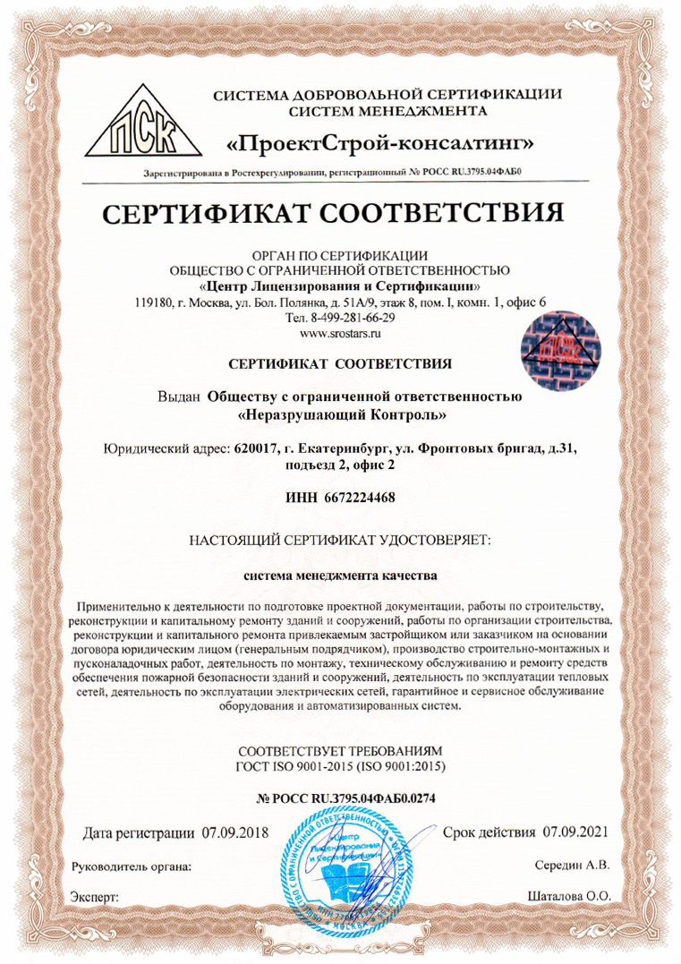 Сертификат соответствия ISO 9001:2015